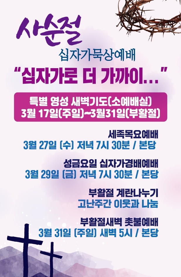 2024³â 3¿ù 17-31ÀÏ »ç¼øÀý&°í³ÁÖ°£ Ưº°»õº®±âµµÈ¸ "½ÊÀÚ°¡·Î ´õ °¡±îÀÌ"